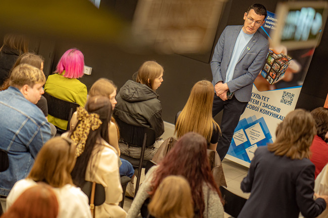 Вже третій рік поспіль студенти факультету систем і засобів масової комунікації спілкуються з професіоналами медіасфери в межах серії зустрічей «Інсайди від профі». Серед спікерів — журналісти-розслідувачі, редактори, піарники, рекламісти, SMM-фахівці, пресаташе спортивних клубів і медіаменеджери. Вони поділяться досвідом, дають поради щодо кар’єри та розповідають, як насправді працює індустрія медіа в Україні. Це унікальна можливість почути з перших уст про реалії професії, нові тренди, інструменти та виклики, з якими стикаються медійники щодня, і унікальний досвід, який став традицією і буде продовжуватися надалі. Більше про проєкт за посиланням.