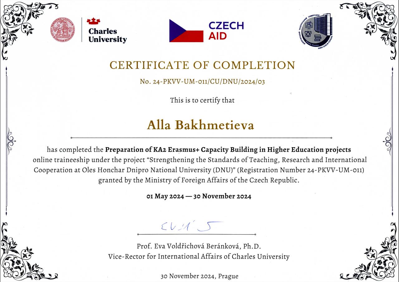 E-mail: bakhmetieva_a@365.dnu.edu.ua